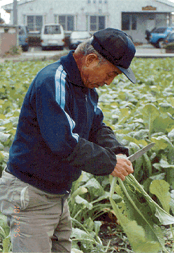 収穫を待つりんごと柿 梓川村で野沢菜を収穫しているおじさん(細田さん)に出合いました。 今のは漬け物工場に出すもので、最盛期は11月25日頃だそうです。 北アルプスは、もう白くなっています。スキーシーズンももうすぐです。