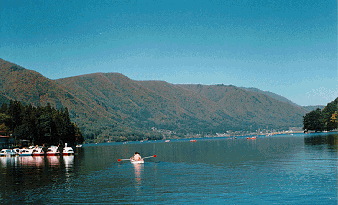 木崎湖は釣り船でいっぱい。小学生が自分の釣った鮎を見せてくれました。