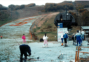 岩岳には、サマーゲレンデがあって、雪もないのにスキーを楽しんでいる人たちが