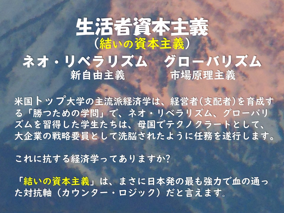 対抗軸として、結いの資本主義(生活者資本主義)はいかがでしょうか?